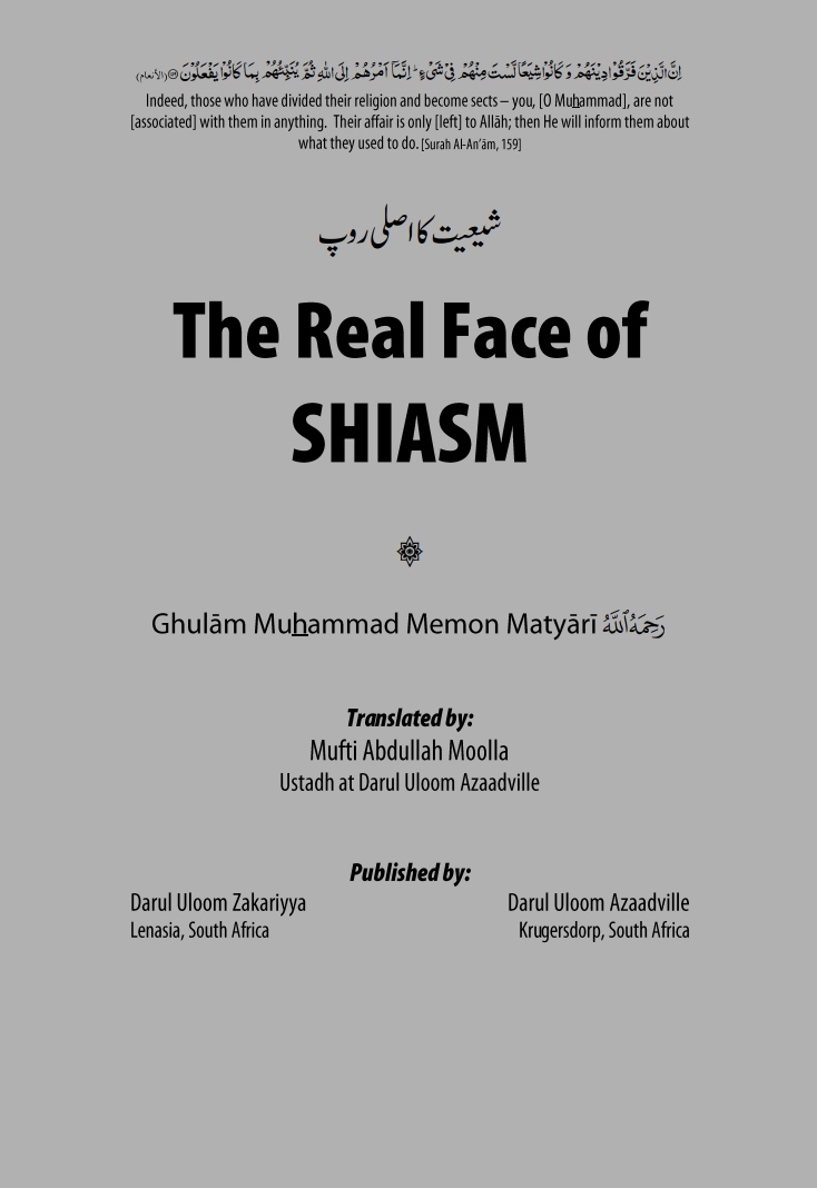"The Ulama particularly should study this kitab in depth and then educate the public of the reality of Shiasm and unmask the sinister plotting of the Shias."